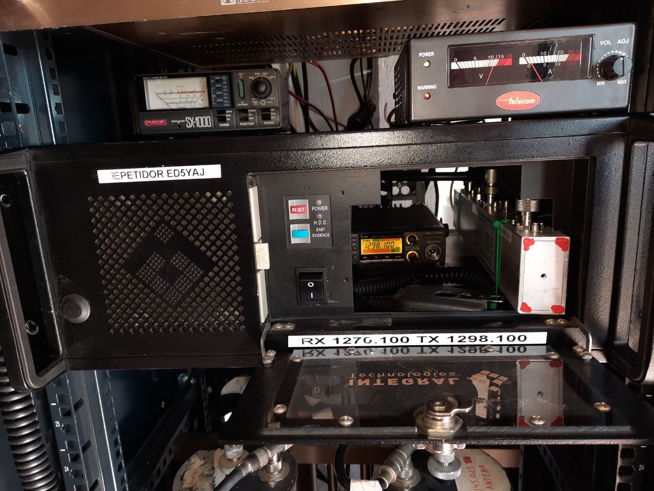 El equipo esta compuesto de dos equipos de ICOM de movil para la banda de 1200mHz, unidos por una tarjeta controladora REL05 y conectados a una cavidad resonante dentro de una caja contenedor, tipo rack de 19"